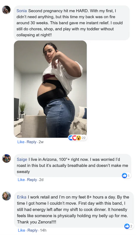 “I was struggling with constant back pain during my second trimester, but the Zenora™ band changed everything. It gives me the perfect support without feeling tight. I would definitely recommend it to all pregnant mummies!"